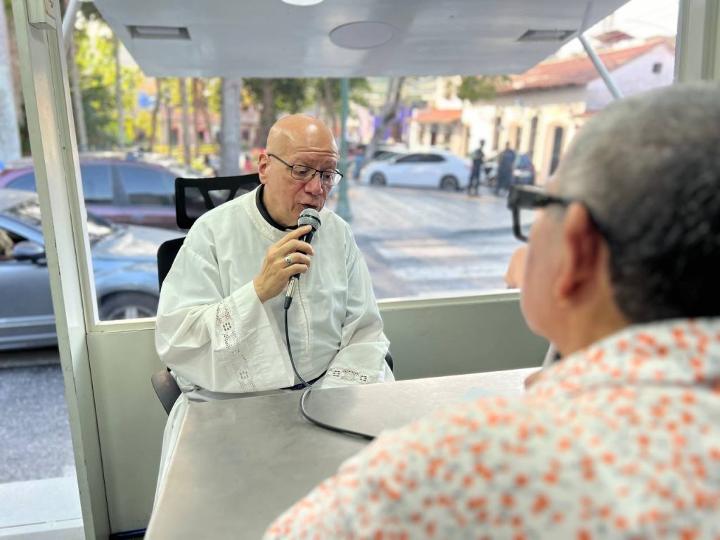 A su vez, el camión informativo conversó con las personas de los sectores visitados para así llevar a cabo charlas de interés para las localidades. Entre ellos estuvo el padre Angel Ríos, párroco de la Iglesia Santa Rosalía de Palermo, que habló sobre la agenda de actividades para la próxima Semana Santa.